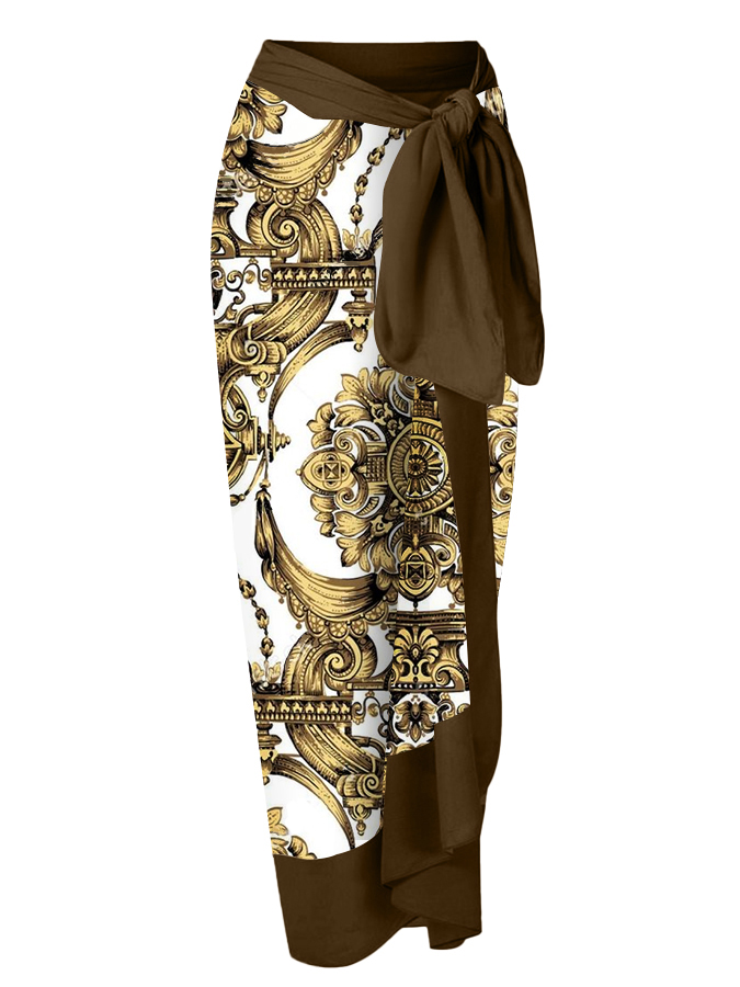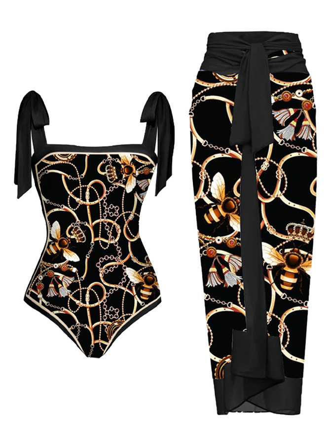 Vintage Chain Print One Piece Swimsuit And Cover Up