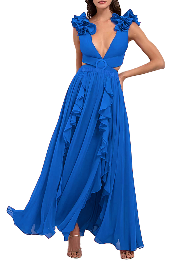 Deep V Red Cutout One Piece Swimsuit and Skirt