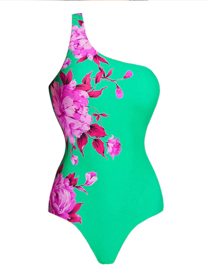 One Shoulder Floral Print Swimsuit Set